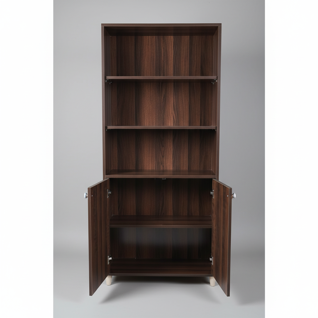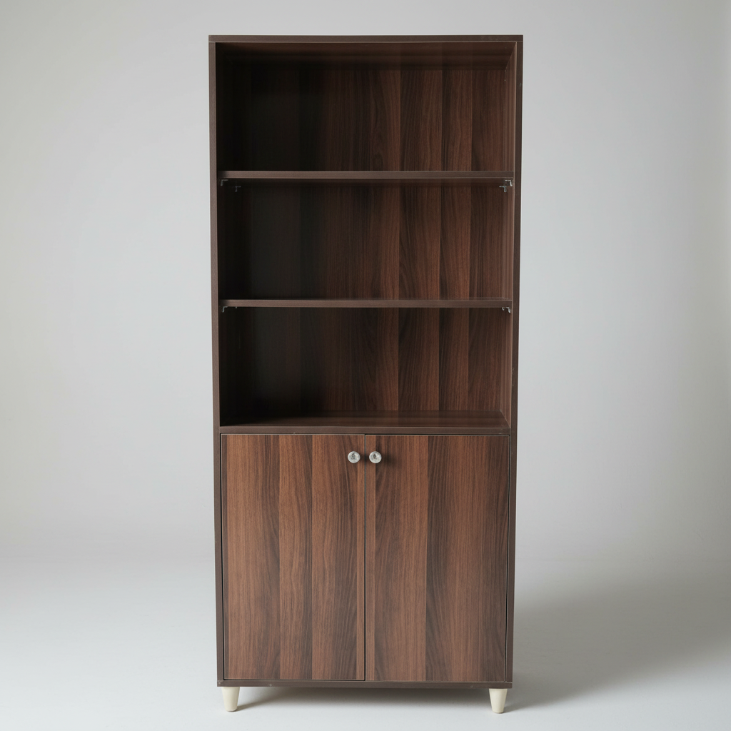 • Storage Configuration: 4 Open Shelves + 1 Upper Double-Door Cabinet.