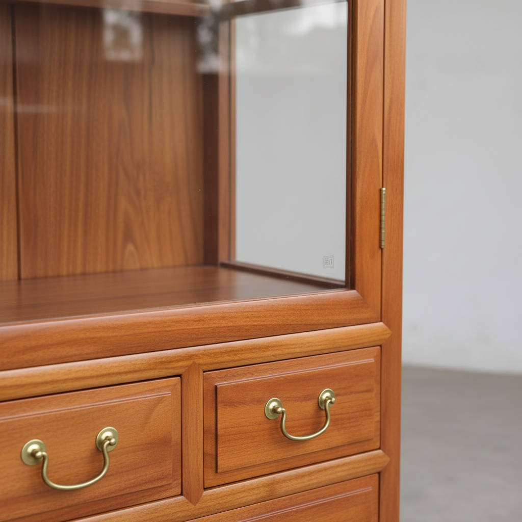 A Legacy of Style The Glass Display Cabinet is designed for those who appreciate the finer details of traditional furniture. The upper section features a crystal-clear glass door that protects your valuables from dust while providing an unobstructed view of your items. The interior is divided into spacious wooden tiers, perfect for books, trophies, or fine china.