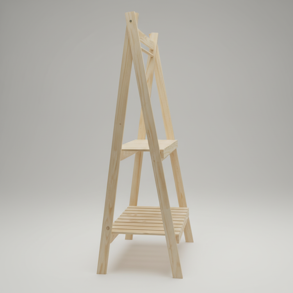 Functional Multi-Tier Design Unlike standard hanging rails, this unit features two integrated slatted shelves at the base. These tiers are perfect for organizing footwear, folded knits, or storage baskets, allowing you to keep your entire ensemble in one place. The tapered A-frame silhouette ensures maximum stability while maintaining a small footprint, perfect for urban apartments.