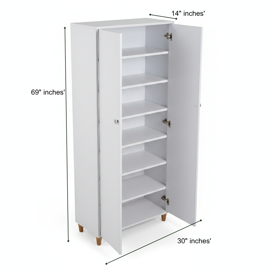 The mesh panels provide a unique “semi-sheer” look, allowing you to see your items at a glance while providing the airflow necessary for items like fresh produce, linens, or footwear. Whether used as a modern pantry in the kitchen or a high-capacity shoe rack in the entryway, its slim profile and six interior compartments maximize vertical space without crowding your floor plan. The reinforced hinges and sturdy wooden legs ensure long-lasting durability for daily use.