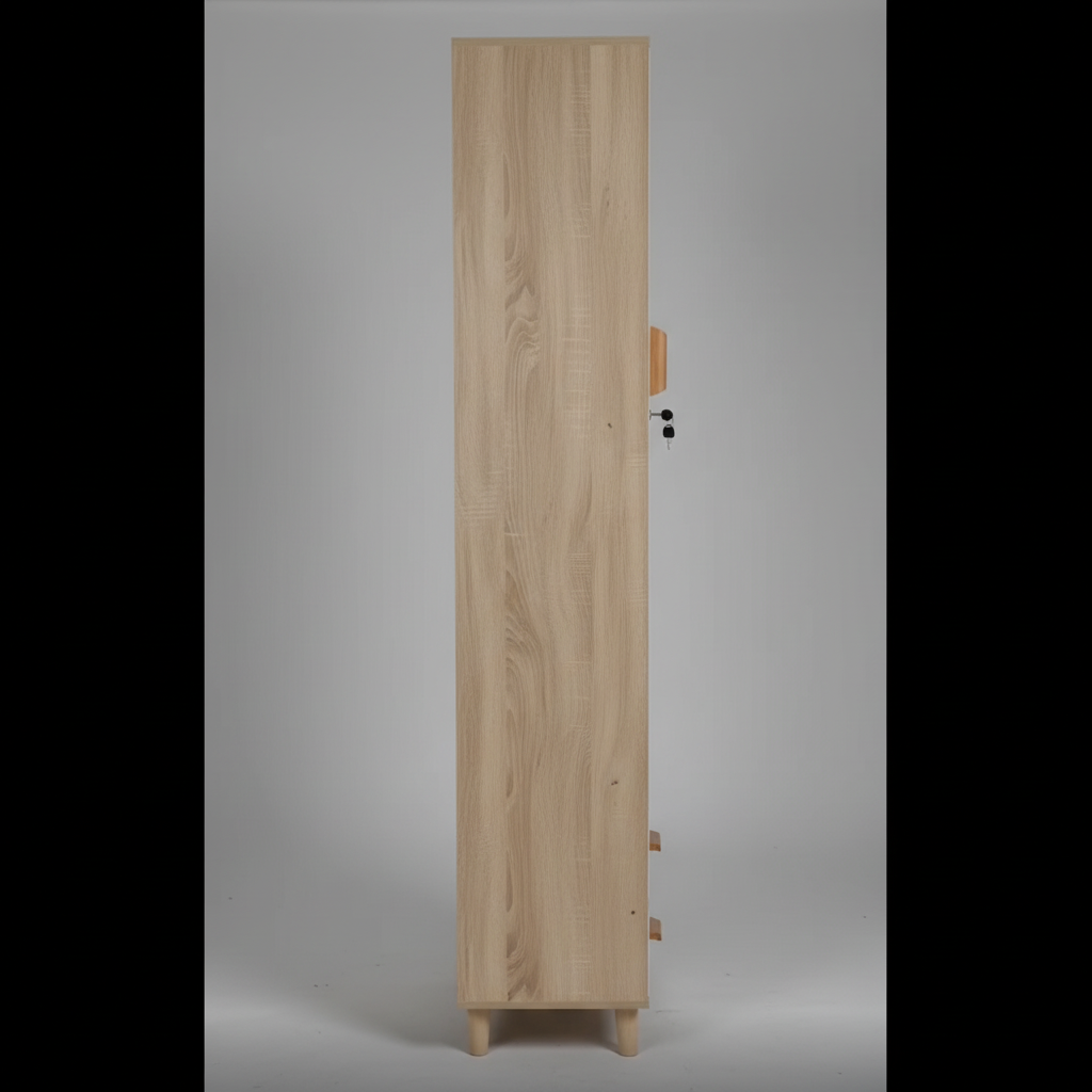 Versatility for Every Room Whether used as a slender linen closet in the bathroom, a private locker in a home office, or a chic wardrobe addition for a compact bedroom, its narrow footprint ensures it fits where other furniture can’t. The soft-touch wooden handles provide a tactile, natural feel that completes the Nordic look.