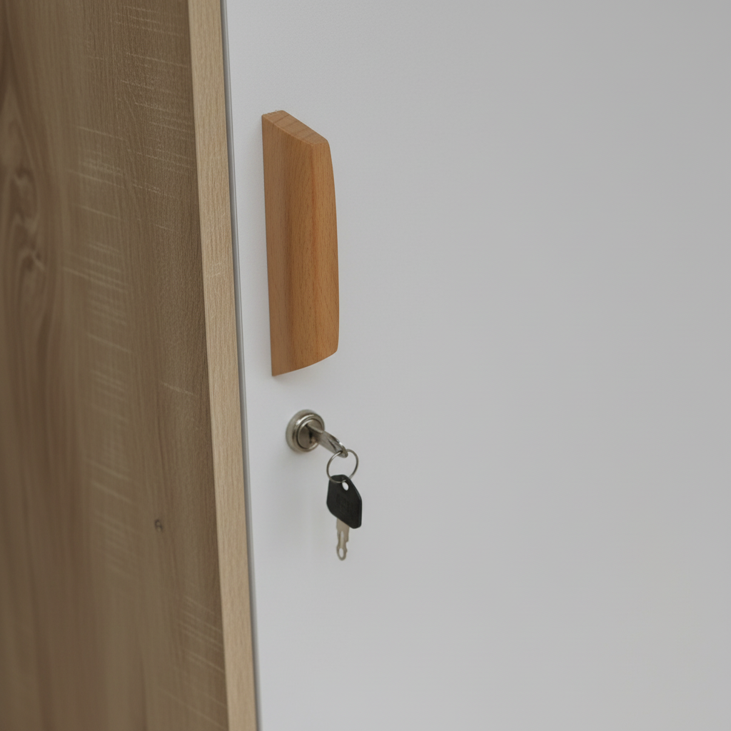 Clean Lines, Secure Storage The storage wardrobe cabinet is designed for the modern minimalist who values both aesthetics and privacy. The high-gloss white door is equipped with a high-quality barrel lock, providing a secure space for personal documents, valuables, or private belongings.
