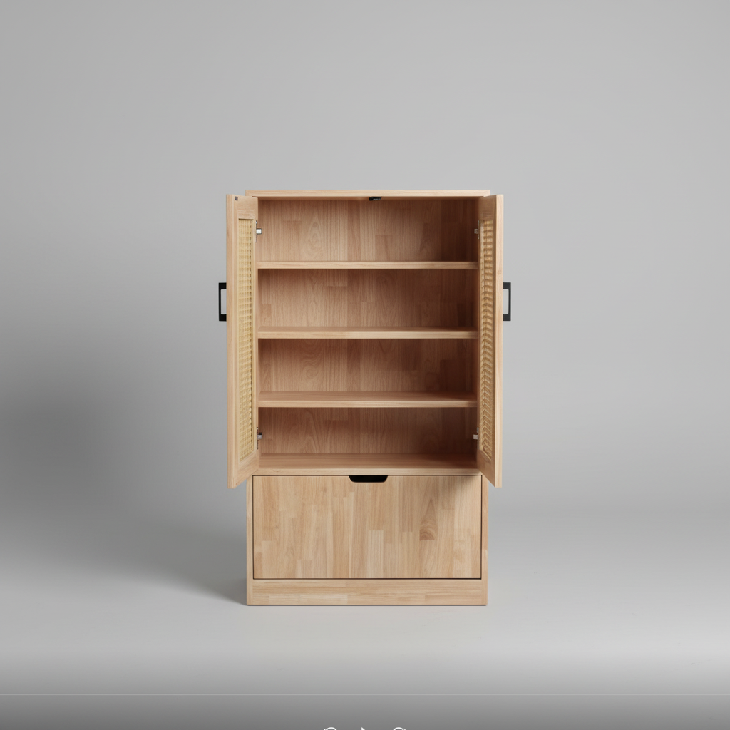 The base of the unit features a sophisticated 3-door cupboard system. Behind these solid wood panels, you’ll find ample space for shoe care kits, seasonal boots, or umbrellas, keeping your entryway looking clean and intentional. Crafted with a reinforced solid wood frame and finished to highlight the organic knots and grains of the pine, this cabinet is built to withstand the daily traffic of a busy home while adding a touch of natural warmth to your decor.