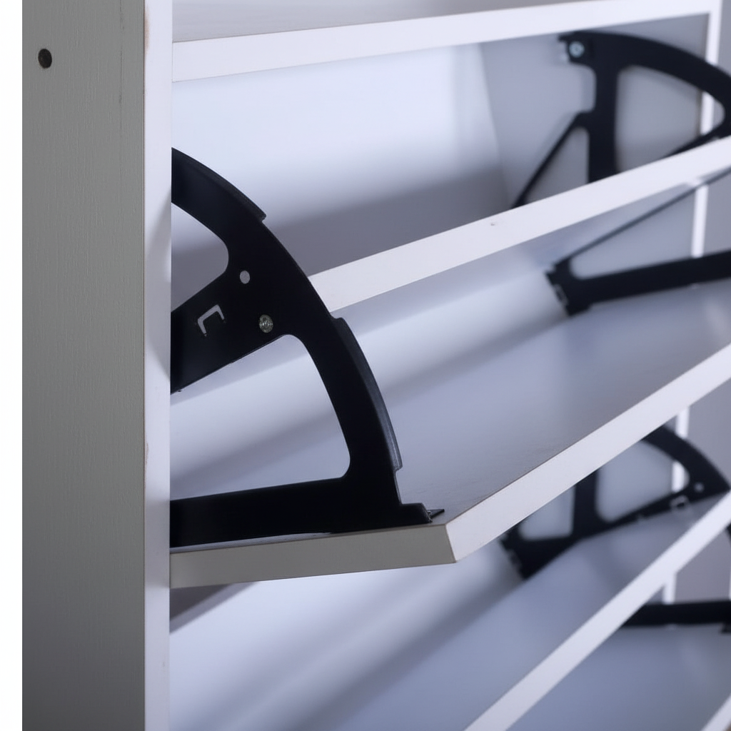 Double-Tier Capacity: Don't let the slim design fool you. Each tilt-out drawer features a dual-layer internal rack, allowing you to store up to 12–16 pairs of shoes (depending on size) in a fraction of the usual space.